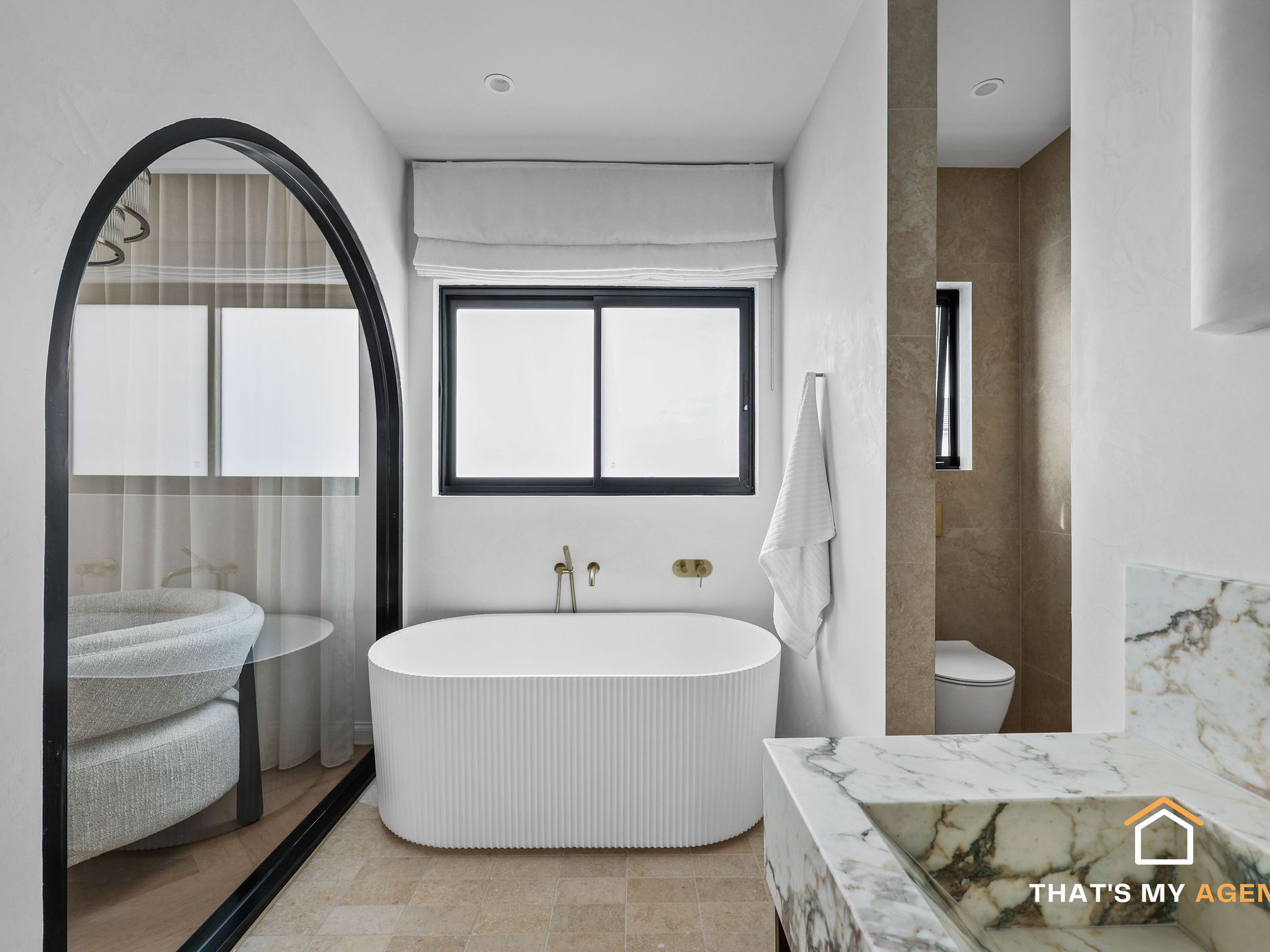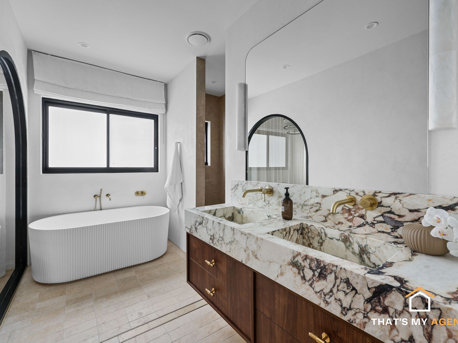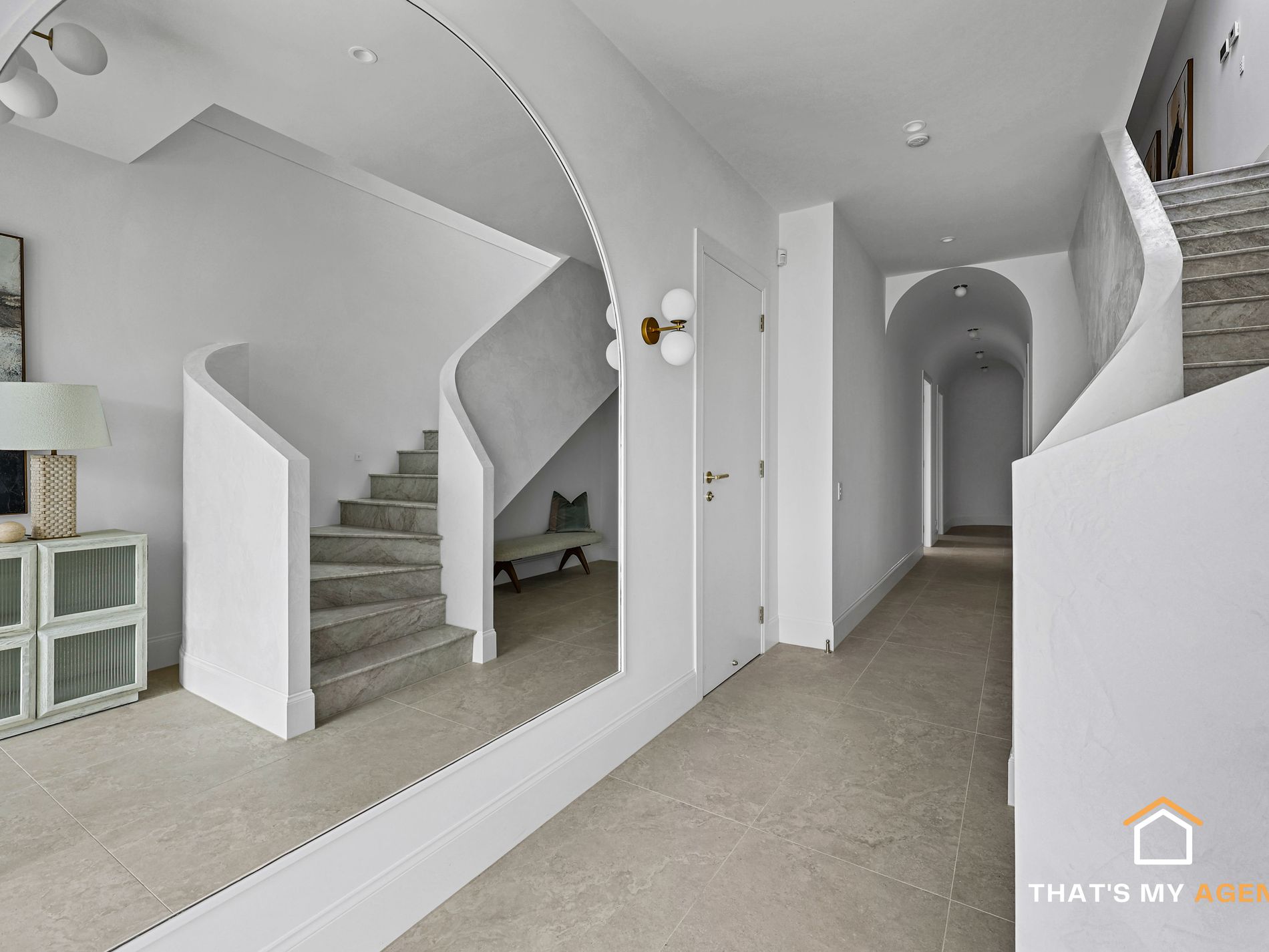 From the grand quartzite stone arch and cedar garage door to the cobblestone driveway and fluted glass front entry, every element exudes sophistication. Inside, sunlight flows across handpicked finishes — including Coco Republic designer lighting, Marmorino Venetian feature plaster, solid 2.4m timber doors, herringbone engineered timber flooring, and heated bathroom floor tiles and towel rails. Soaring 3.2m ceilings downstairs and 2.7m ceilings upstairs create a breathtaking sense of space, light, and grandeur throughout the home.